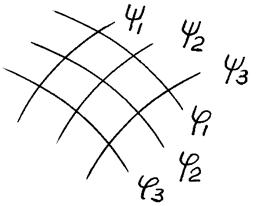 Из математики известно, что выражения типа (6.17) свидетельствуют о взаимной ортогональности кривых. Следовательно, линии тока и эквипотенциальные линии образуют сетку взаимно ортогональных кривых, которая носит название гидродинамической сетки движения. Примерный ее вид показан на рис. 6.3.