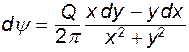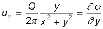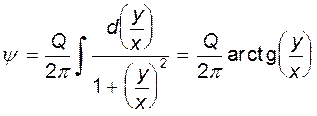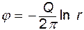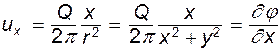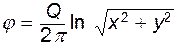 Из (6.22) следует, что эквипотенциальные линии источника представляют собой окружности. Формулу (6.22) можно записать и в следующей форме