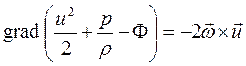 Если в (7.2) в правую часть подставить ускорение в виде (7.7) либо (7.8), то это приводит к уравнению движения в форме Громеки-Лэмба. Для установившегося движения имеем