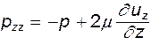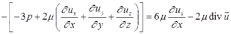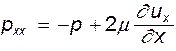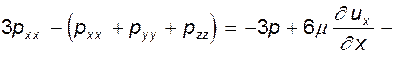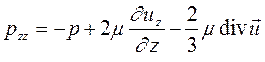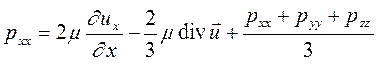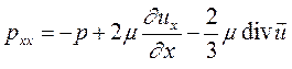 Рассмотрим теперь нормальные напряжения, возникающие от сил вязкости. Согласно закону Стокса, их можно записать в виде так называемых девиаторов напряжения, имеющих вид:
