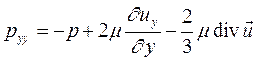 Кроме того, согласно закону Стокса касательные напряжения, как показано выше, пропорциональны скоростям угловой деформации, а нормальные - скорости линейной деформации, т.е.