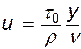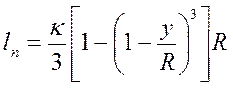 Использование этого соотношения с учетом линейного распределения касательных напряжений по сечению трубы приводит к закону распределения скоростей, соответствующему гиперболическому тангенсу. Вывод этого соотношения можно найти в книге: Павленко В.Г. Основы механики жидкости. - Л.: Судостроение, 1988. - 240 с.