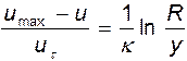 т.е. скорости в ядре потока распределены по логарифмическому закону.