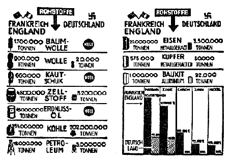 Например, французская листовка 1939 г. (рис. 1), выпущенная для немцев незадолго до начала войны с Германией, доказывала превосходство Англии и Франции над Германией по всем главным экономическим показателям.