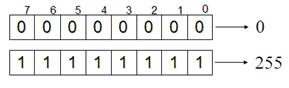 Биты в байте нумеруются с конца с 0-го по 7-й. Минимальная комбинация на основании одного байта – восемь нулей, максимальная – восемь единиц. Рис. 18а.