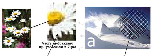 Рис. 19. Минимальная единица изображения: пиксель и растр.