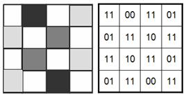 | Рис. 20a. 1 бит на пиксель – 2 цвета. | Рис. 20b. 2 бита на пиксель – 4 цвета. |