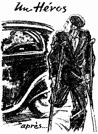 Немецкая листовка весны 1940 г. "Герой после." (рис. 14) была прямо рассчитана на провоцирование ненависти бедных, проливающих свою кровь на фронте и становящихся калеками, к богачам, остающимся в тылу и ведущим красивую жизнь.