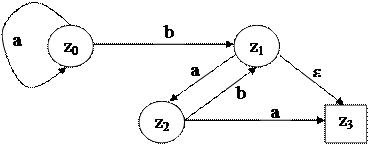 Пример: A= ({e, a, b}, {z0, z1, z2, z3}, t, z0, {z3}).