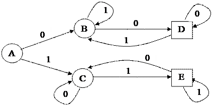 Предположим, что состояния запоминаются неявно. В этом случае косвенно известна нужная строка таблицы переходов и задач сводится к нахождению перехода только по входному символу. Эта задача, естественно, решается для каждого состояния отдельно.