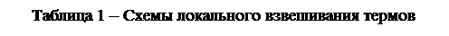 В таблице 1 представлены распространенные меры взвешивания локальных термов.