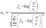 3) Энтропийное взвешивание. Как было сказано выше, это взвешивание основывается на предпосылках теории информации и является довольно сложной схемой взвешивания. В экспериментальных работах [34,35] показано, что данный подход является наиболее эффективным, применительно ко многим задачам. Его достоинство еще в том, что он показал высокую эффективность в задачах с использованием латентной семантической индексации: