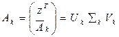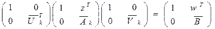 где zT - первый ряд из Ak , требующий удаления. Определим ε1 как вектор-столбец размерностью m x 1, состоящий из всех нулей, кроме первого элемента, чье значение равно 1, и определим ортогональную матрицу Û размерностью m x (k + 1) заданную как