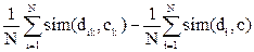 где sim – функция близости между двумя документами, dik – представление документа i без учета термина k и ck – средний, центральный вектор коллекции, подсчитанный без учета термина k, di и c – документ и средний вектор соответственно, представленные с учетом термина k.