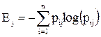 Сначала для каждого кластера j считается pij – вероятность того, что член кластера j принадлежит некоему классу i из заранее составленного экспертами распределения классов. Энтропия каждого кластера считается в соответствии с классической формулой:
