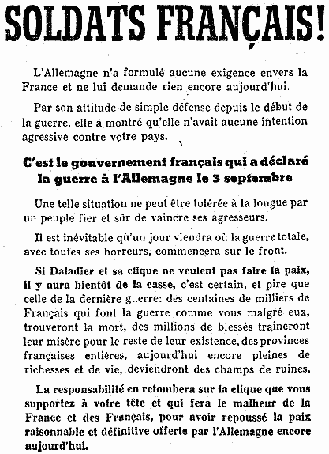 Рис. 19. "Французские солдаты!.. Это французское правительство объявило войну Германии 3 сентября". Немецкая листовка апреля 1940 г.