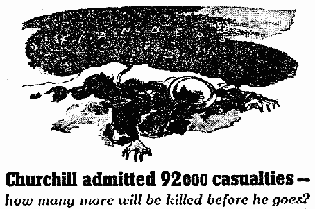 Рис. 24. "Черчилль стал причиной 92 тысяч жертв — скольких он еще убьет, прежде чем уйдет?" (немецкая листовка осени 1940 г.).