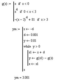 Пример применения оператора while приведен на рис. 3.8. В нем определяется максимум функции (3.1), показанной на рис. 3.6. В программе реализован простейший алгоритм перебора значений аргумента от минимального значения
