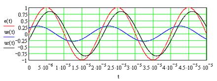 На рис. 7.5 показаны временные диаграммы напряжений источника e(t) (кривая с самой большой амплитудой), напряжения