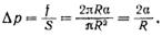 Если поверхность жидкости имеет цилиндрическую форму, то один из радиусов в формуле (3.16) становится бесконечным, и для этого случая формула (3.16) приобретает вид
