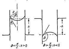 В соответствии с тем, что смачивающая жидкость поднимается по капилляру, а несмачивающая — опускается, формула (3.19) дает в случае θ < π/2 (cosθ >0) положительные h и в случае θ >π/2 (cosθ < 0) отрицательные h.