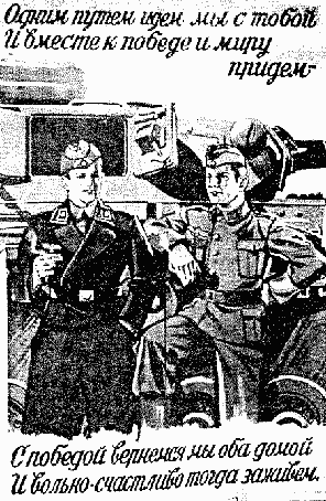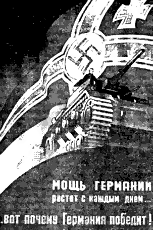Перед Вами стоит мощный, непобедимый немецкий вермахт! Перед Вами стоят Ваши братья, добровольцы в освободительной борьбе против большевизма!