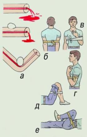 Переломы бывают открытые и закрытые. Открытые переломы представляют собой сочетание повреждений кости и раны. При открытых переломах в первую очередь необходимо остановить кровотечение и закрыть рану стерильной повязкой.
