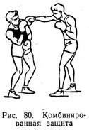 Комбинированной защитой пользуются более опытные мастера ринга и применяют ее на всех трех дистанциях боя и особенно на ближней и средней.