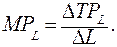 Предельный продукт (MPL, предельная производительность труда) – количество дополнительного продукта, полученное при использовании дополнительной единицы переменного фактора. Он определяется как отношение дополнительного объема выпуска к дополнительной единице труда, вызвавшей приращение выпуска: