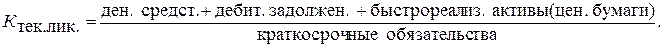- текущей ликвидности отражает какая часть текущих обязательств может быть погашена не только за счет денежных средств, но и поступлений от дебиторов;