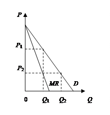 Такое положение объясняется следующим. В связи с тем, что кривая спроса монополиста имеет отрицательный наклон, то ему для увеличения выпуска на одну единицу необходимо снизить цену, только в этом случае потребители приобретут всю произведенную им продукцию. При этом цена понижается не только на эту дополнительную единицу товара, но и на предыдущие единицы выпуска.