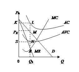 Как и на любом другом типе рынка, при монополистической конкуренции фирма находится в состоянии равновесия, когда MR=MC. Соответственно точка пересечения кривых предельного дохода и предельных издержек на графике (точка Е) задает тот размер выпуска продукции Q 1, продавая который по цене PE фирма максимизирует свою прибыль (рис. 7.20, а) или минимизирует убытки (рис. 7.20, б). Если бы та же самая цена PE при тех же самых предельных издержках фирмы сложилась на рынке совершенной конкуренции, то фирма выбрала бы объем продаж Q 2. На графике видно, что Q 1 меньше Q 2 . Как и монополия, фирма несколько недопроизводит и завышает цену по сравнению с конкурентной фирмой. Поскольку цена выше предельных издержек (P>MC), в обществе не достигается аллокативная эффективность. (Подробнее см. 7.6).