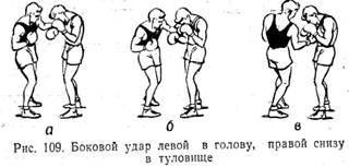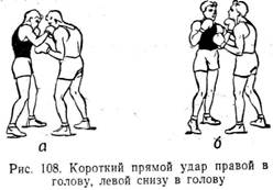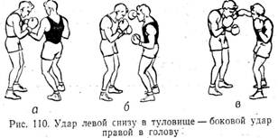 Укажем лишь на некоторые особенности техники повторных ударов снизу в туловище и голову.