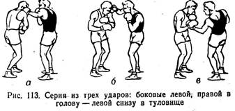 Систематически совершенствуясь в ударах сериями, боксер сможет в боевой обстановке в нужный момент нанести определенную серию почти автоматически, акцентируя в ней каждый третий удар.
