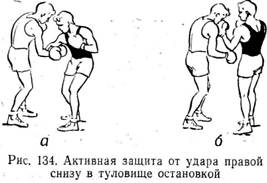Активная защита от удара правой снизу в туловище. От удара правой снизу в туловище применяют три активные защиты: