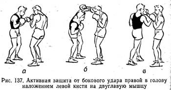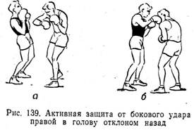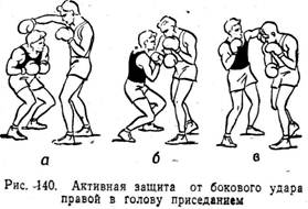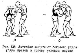 Активные защиты. Активной может быть, любая из защит, примененная в ближнем бою, когда боксер, преднамеренно защищаясь, переходит затем в атаку соответственно подготовленным определенным, ударом или серией ударов.