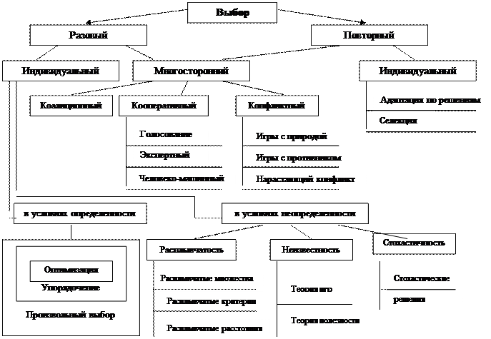 Функции выбора. Ограничения на функции выбора. Групповой выбор. Различные правила голосования. Парадоксы голосования. Выбор в условиях неопределенности. Критерии сравнения альтернатив при неопределенности исходов. Выбор в условиях статистической неопределенности. Общая схема принятия статистических решений. Основные направления математической статистики. Парадоксы и «ловушки» статистических методов. Выбор при расплывчатой неопределенности. Многокритериальный выбор в расплывчатой ситуации. Некритериальные задачи расплывчатого выбора. Достоинства, недостатки, ограничения оптимизационного подхода.