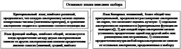 Основой критериального языка описания выбора является предположение о возможности оценить каждую отдельно взятую альтернативу определенным числом. При этом выбор сводится к отысканию альтернативы с наибольшим значением критериальной функции.