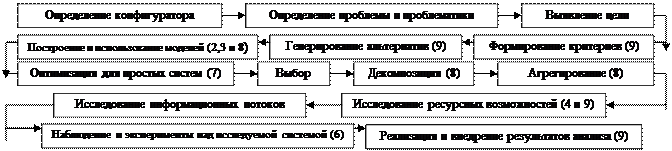 Технические, организационные, социальные и психологические этапы системного анализа. Разнородность знаний системного анализа. Прикладной аспект системных знаний. Постановка задачи, формулирование проблемы, превращение проблемы в проблематику, разрешение проблематики. Целеполагание, ценности и цели, множественность целей, опасности подмены целей средствами, смешения целей, изменение целей со временем. Критерии как модель целей, формирование критериев, причины многокритериальности реальных задач, критерии и ограничения.