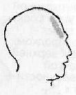 При виде сбоку лобовая поверхность, как правило, отклонена назад. Часто отсутствует или плохо просматривается точка перехода ото лба к верхней поверхности головы. В результате лоб выглядит скошенным.