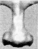 "Нос-капля". Отличается сильным уширением кончика носа и вытянутостью вниз. В отличие от славянского "носа-утки" уширен кончик носа, а не крылья. Уширение начинается уже от середины спинки. Кончик уходит вниз, за горизонтальную линию крыльев.