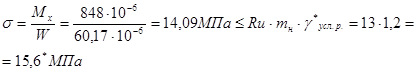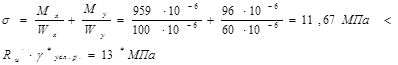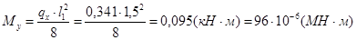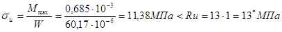 Учитывая, что нагрузка от собственного веса незначительная, проверяем прочность обрешетины при действии сосредоточенной силы (монтажного груза Рн = 1 КН).