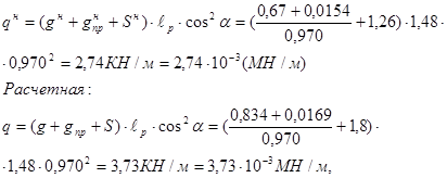 Т.к. обрешетины работают на косой изгиб, определяем составляющие нагрузки: