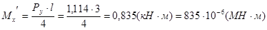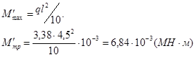 где mн = 1,2 – коэффициент, учитывающий кратковременность действия монтажной нагрузки.