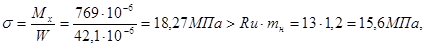 где mн = 1,2 – коэффициент, учитывающий кратковременность действия сосредоточенной силы.