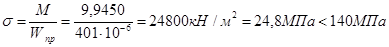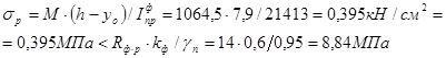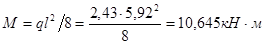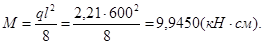 Расчет на прочность: максимальный изгибающий момент от полной расчетной нагрузки: