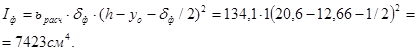 Момент инерции фанерной обшивки относительно центра тяжести плиты (без учета момента фанерной обшивки относительно собственной оси)