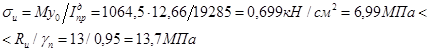 Напряжение в сжатых волокнах продольных ребер, работающих на изгиб,