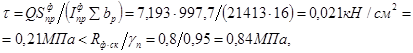 Сдвигающее напряжение в пенопласте по нейтральной оси: