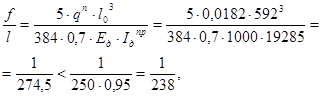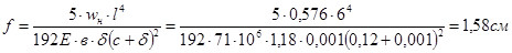 Относительный прогиб плиты при qн = 1,82 кН/м = 0,0182кН/см и Ед = 10000МПа = 1000 кН/см2